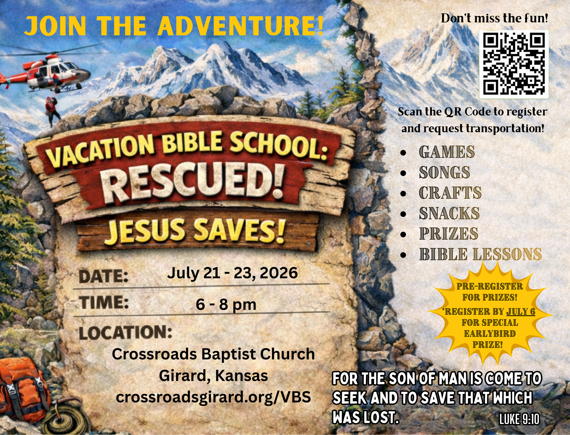 "RESCUED! Jesus Saves!" is a three-day, rescue-themed summer vacation Bible school event for children that will point kids to God's Word for the questions they are facing. Through games, songs, Bible lessons, snacks, crafts, prizes, and fun activities, kids will see how Jesus is the ultimate Rescuer.